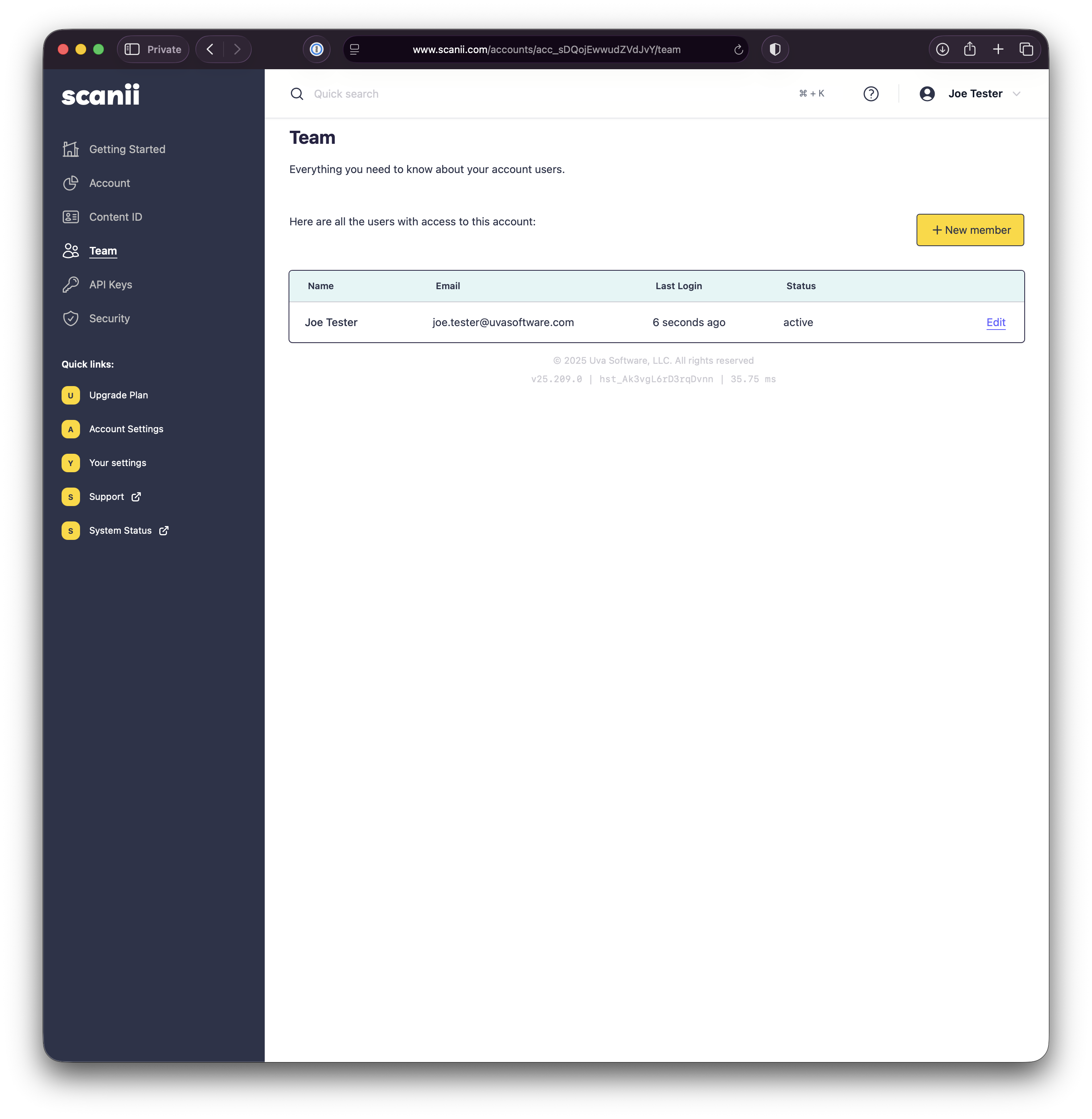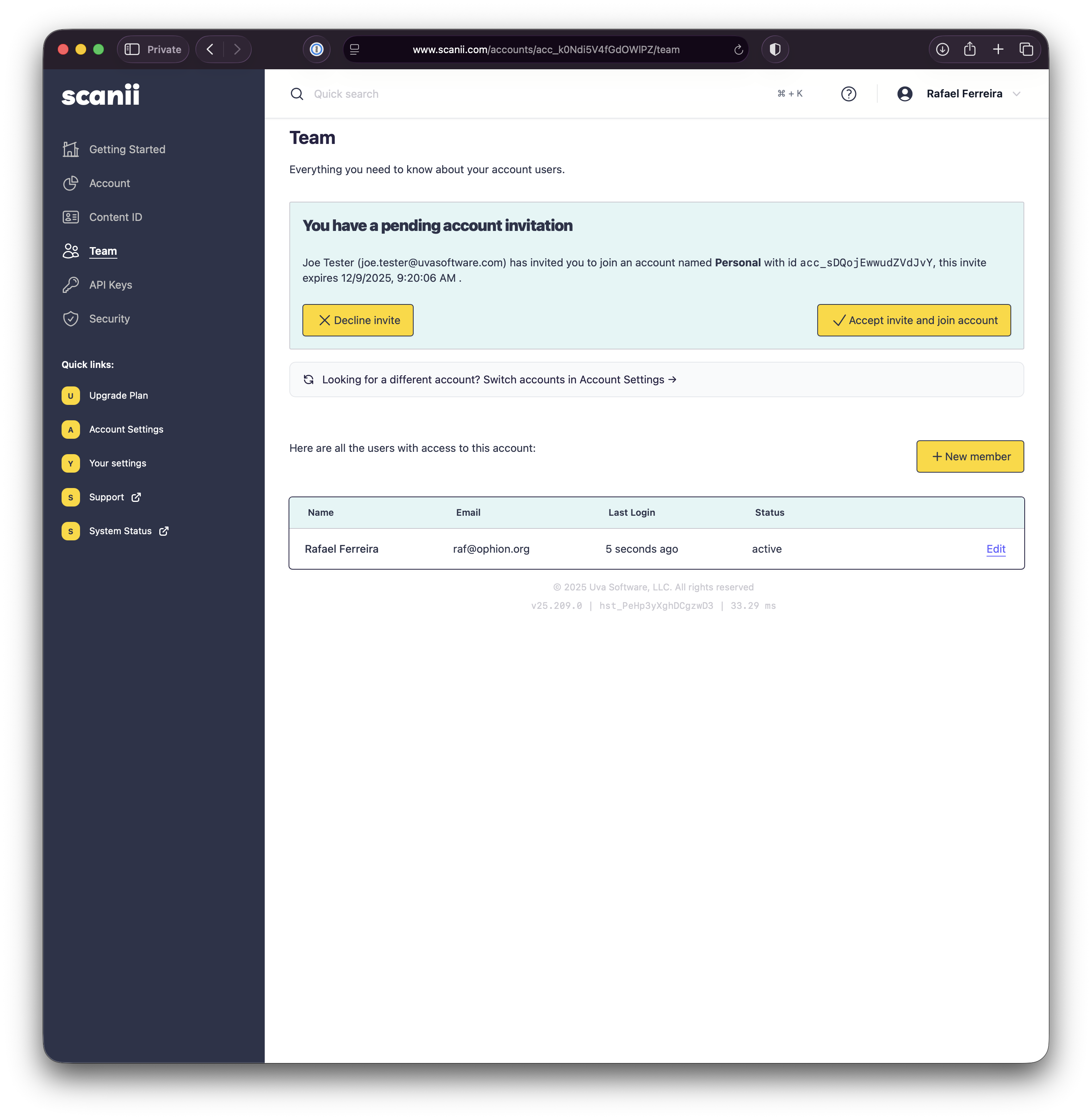 - The user you are inviting to join your account must have an existing scanii.com account or create an account at www.scanii.com/signup