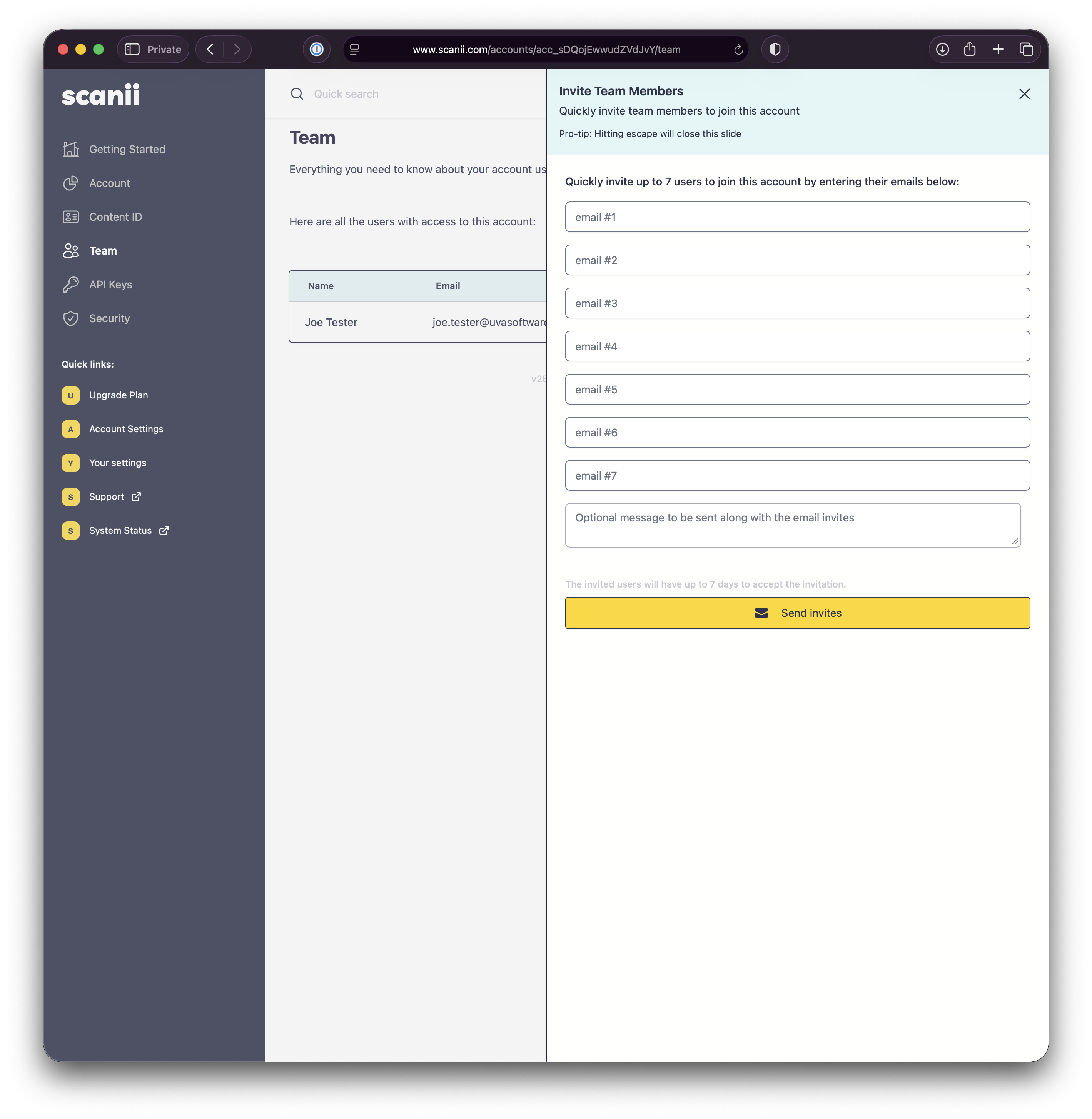 To invite other users to join your scanii account, follow these simple steps:
